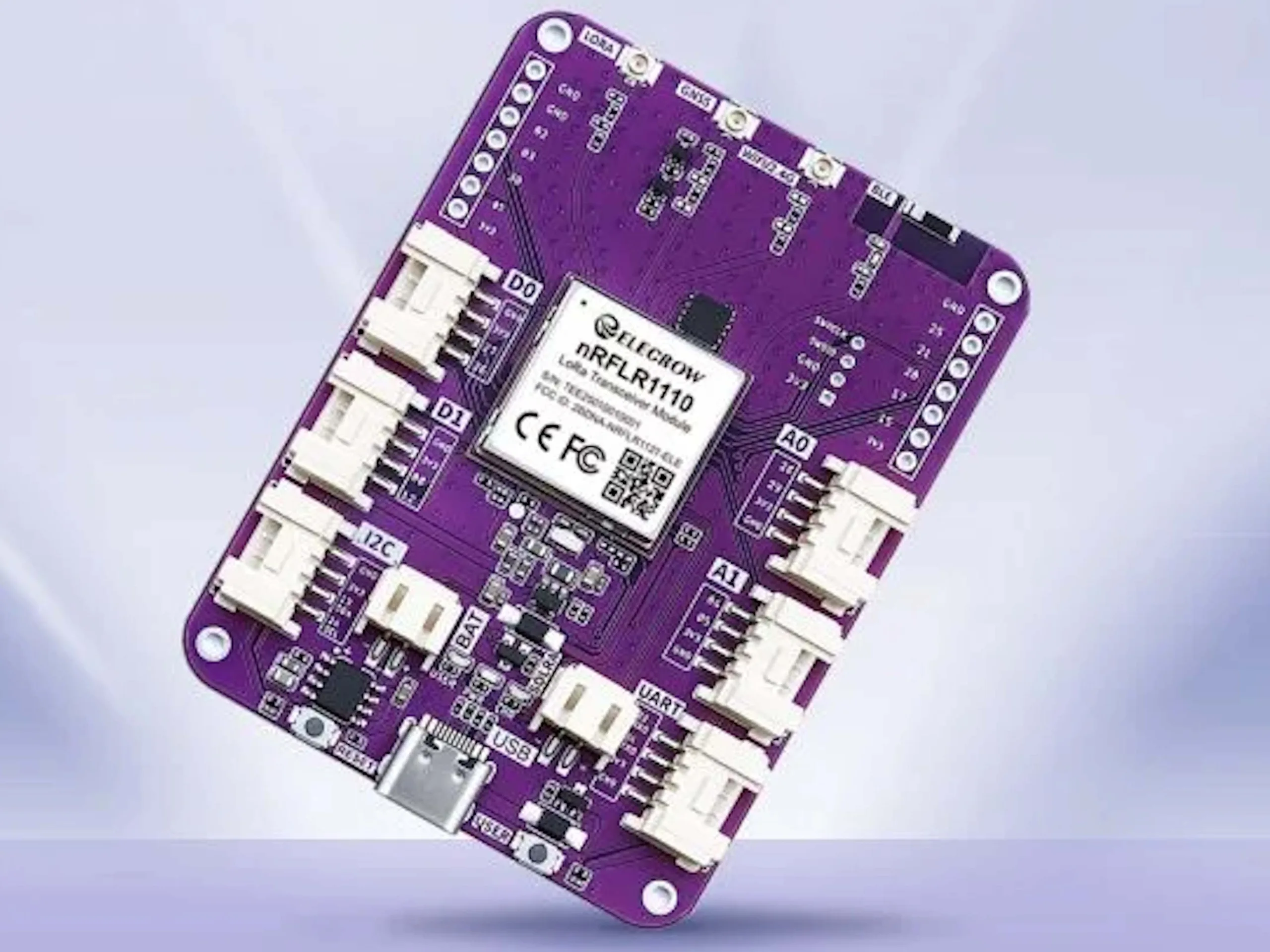 O Wi-Fi e o Bluetooth provavelmente são familiares para a maioria dos usuários, mas o mesmo pode não se aplicar ao LoRa. O LoRa é um padrão de transmissão sem fio que prioriza o alcance máximo em relação às altas taxas de dados. Normalmente, são possíveis alcances de vários quilômetros, embora o desempenho real dependa muito da densidade local de edifícios e do terreno. A Elecrow oferece o LoRa Node Expansion Board-nRFLR1110 (LMM15010D), uma nova placa compatível com conectividade LoRa a 868 ou 915 MHz, dependendo do firmware. Ela usa um controlador nRFLR1110 e pode ser usada como uma ponte: vários sensores podem se conectar à placa, que encaminha os dados para um PC ou servidor por meio de um gateway e roteador.