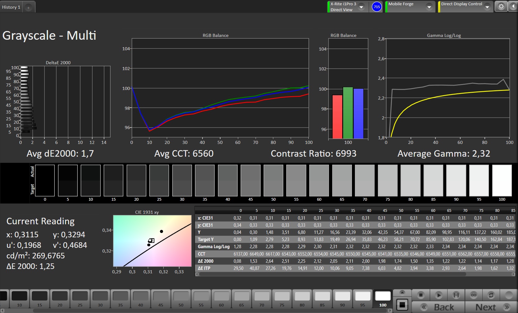 ΔE Greyscale Calman: 1.7 | ∀{0.09-98 Ø5}