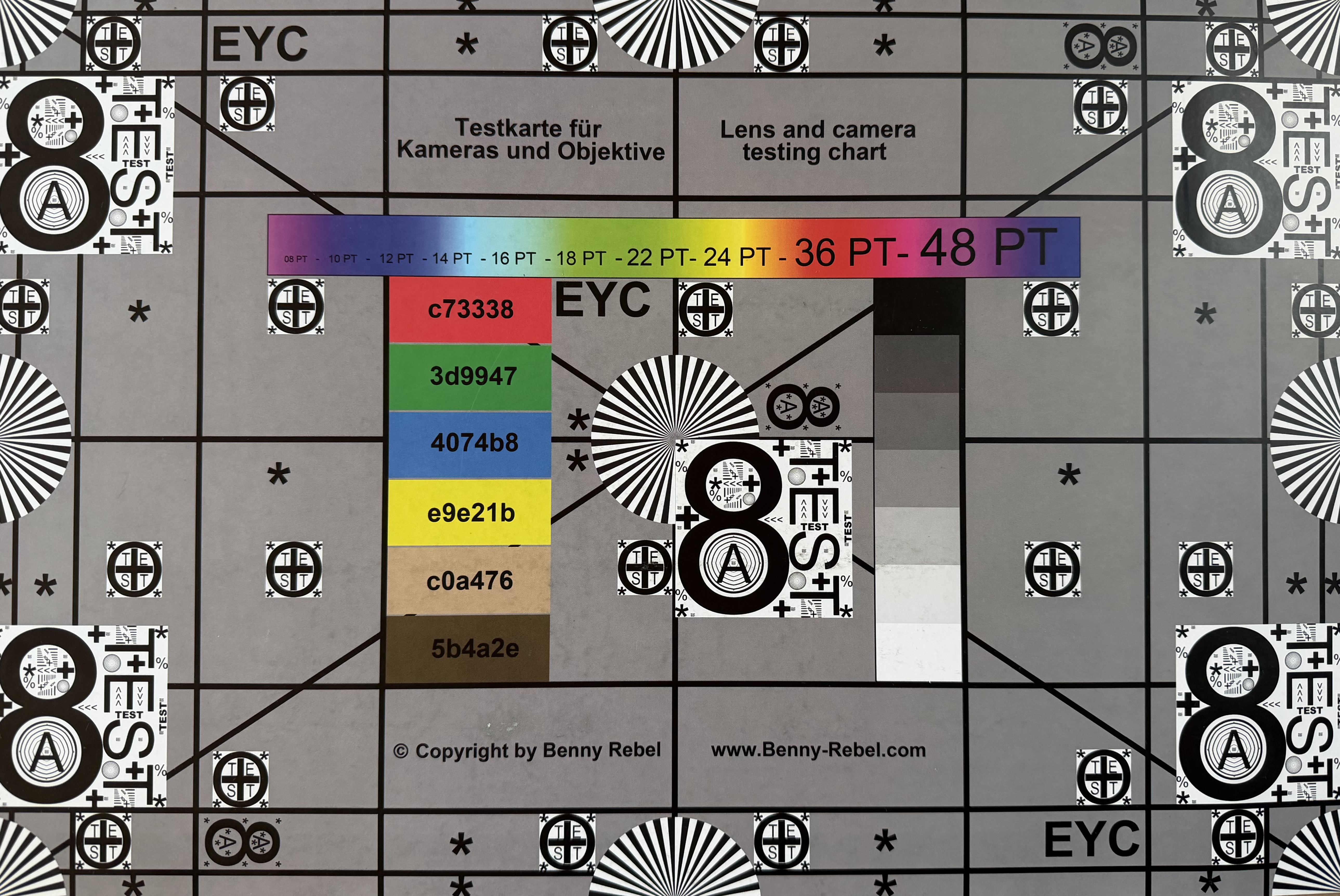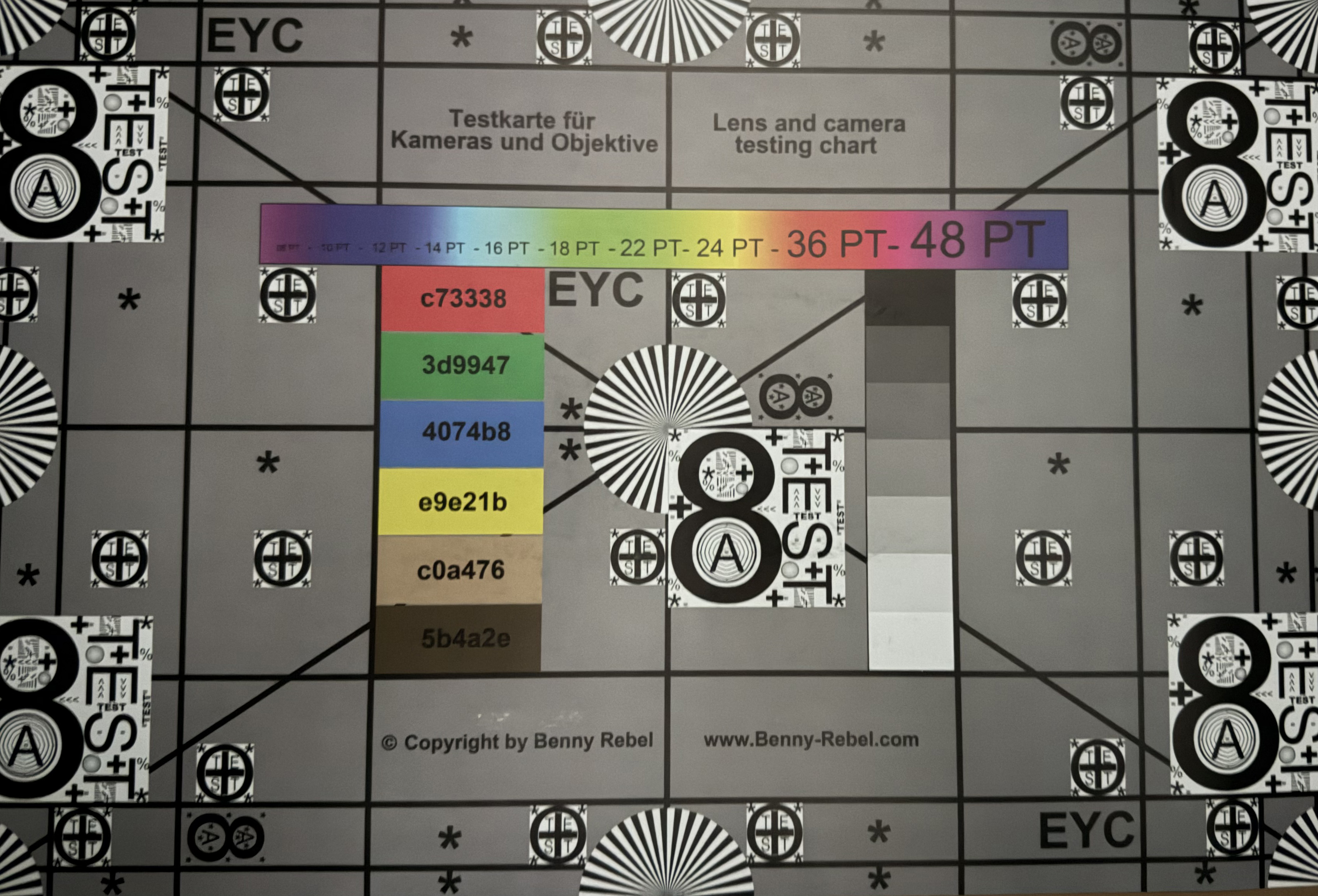 Daylight imageDaylight imageUltra-wide angleLow light imageSob condições de iluminação controladas, a imagem do gráfico de teste é quase totalmente nítida. A lente principal também tem um desempenho impressionante quando se trata de representar as cores de referência. Pequenos desvios dos valores-alvo são observados apenas em alguns tons de verde e azul.