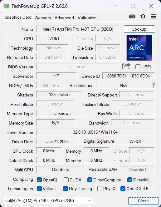 HP ZBook 8 G1i 14, RTX 500 Intel Core Ultra 7 265H, Nvidia RTX 500 Ada Generation Laptop GPU | HP ZBook 8 G1i 14 Intel Core Ultra 7 255H, Intel Arc Graphics 140T | HP ZBook Ultra G1a A3ZQ0ET AMD Ryzen AI Max PRO 390, AMD Radeon 8050S | Lenovo ThinkPad P14s Gen 6 21RV0017GE AMD Ryzen AI 9 HX PRO 370, AMD Radeon 890M | Dell Precision 5000 5490 Intel Core Ultra 9 185H, NVIDIA RTX 3000 Ada Generation Laptop GPU | HP ZBook Firefly 14 G11 Intel Core Ultra 7 165H, NVIDIA RTX A500 Laptop GPU | |