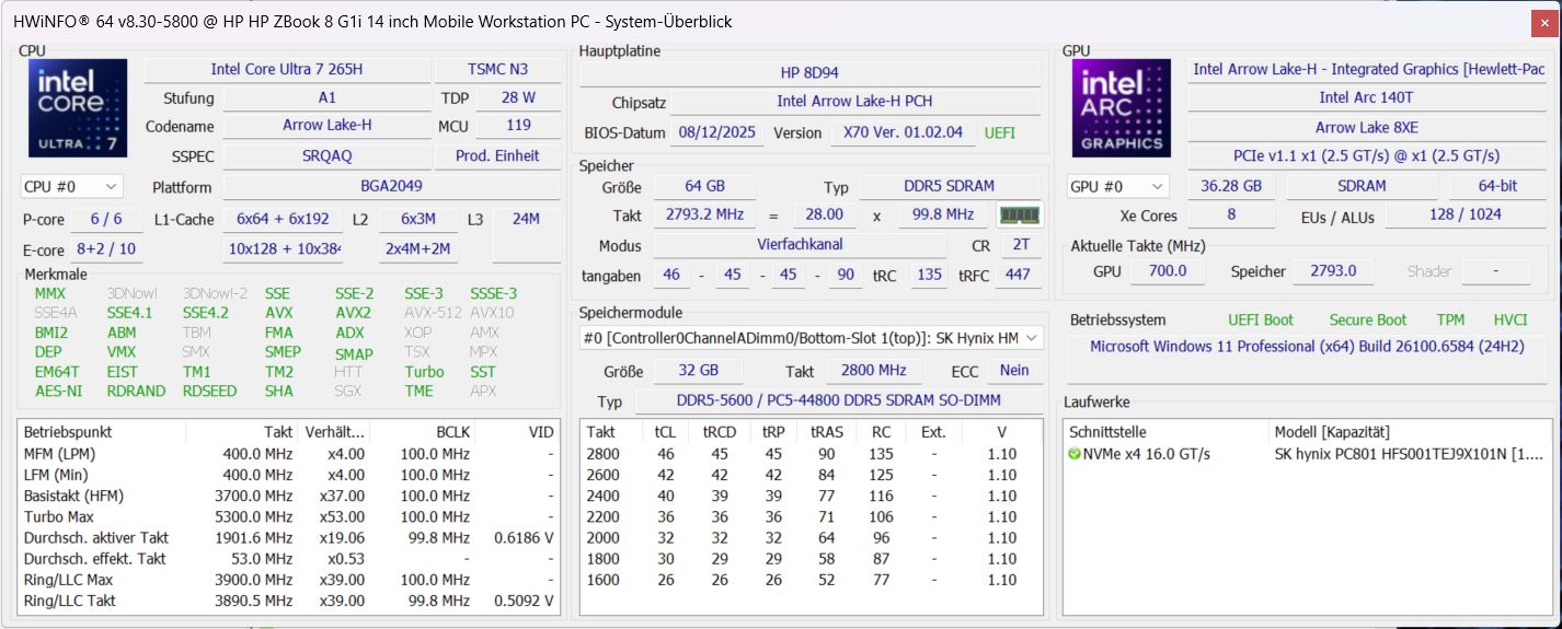 HP ZBook 8 G1i 14, RTX 500 Intel Core Ultra 7 265H ⎘ Nvidia RTX 500 Ada Generation Laptop GPU ⎘ 64 GB Memória, 1024 GB SSD | Amazon: $2,968.00 | 1.7 kg | 18.9 mm | 14.00" 2560x1600 216 PPI IPS | |