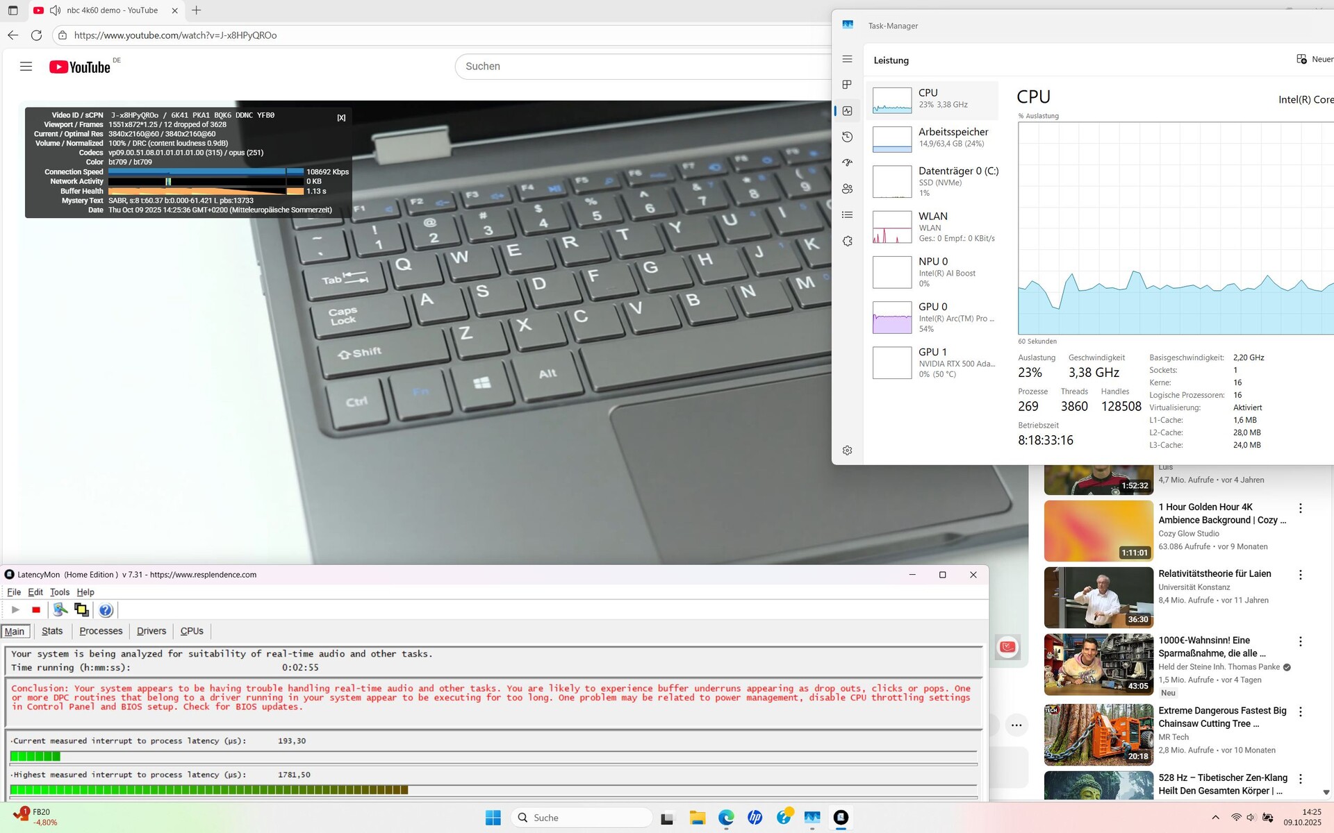 HP ZBook 8 G1i 14, RTX 500 análise de áudio