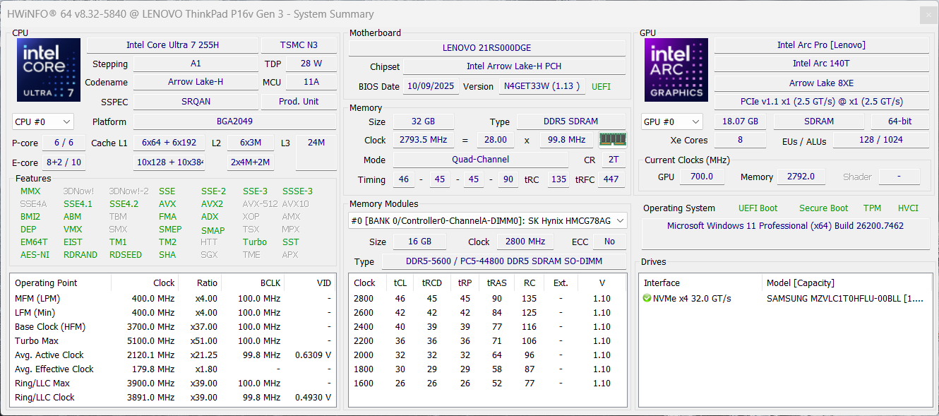 | Lenovo ThinkPad P16v G3 21RS000DGE Intel Core Ultra 7 255H ⎘ NVIDIA RTX PRO 2000 Blackwell Generation Laptop ⎘ 32 GB Memória, 1024 GB SSD | Amazon: 1. $2,299.00 Lenovo ThinkPad P16v Gen 2 I... 2. $849.99 Lenovo ThinkPad E16 Gen 3 Bu... 3. $1,623.55 Lenovo ThinkPad P16s Gen 3 2... Preço de tabela: 2825€ | 2.2 kg | 19.6 mm | 16.00" 1920x1200 IPS | |