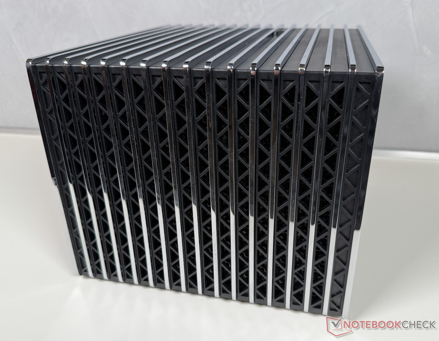 Portanto, embora seja definitivamente audível, não o notamos enquanto assistíamos a um filme, a menos que prestássemos atenção conscientemente. Apesar do sistema de resfriamento silencioso e monótono, o gabinete permanece agradavelmente frio mesmo durante a operação prolongada, graças às suas 14 aletas de metal. Entretanto, o mesmo não pode ser dito da unidade de fonte de alimentação compacta.