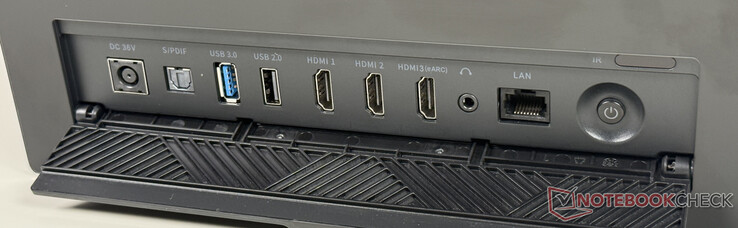 O VisionMaster Max oferece uma série de conexões para ligar soluções de áudio externas. Além do eARC na terceira porta HDMI, o S/PDIF é outra interface de áudio digital. Uma conexão jack de 3,5 mm para fones de ouvido, por exemplo, completa o conjunto de conexões, caso eles não sejam ou não possam ser conectados sem fio via Bluetooth 5.2.