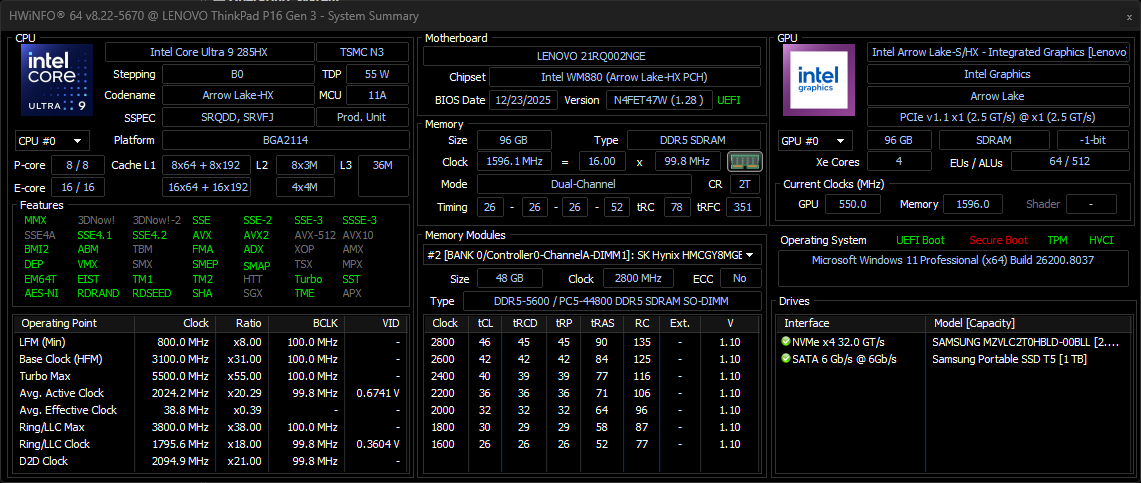 | Lenovo ThinkPad T16g Gen 3 RTX 5080 (ADATA SD8.0 Express 512 GB) | |