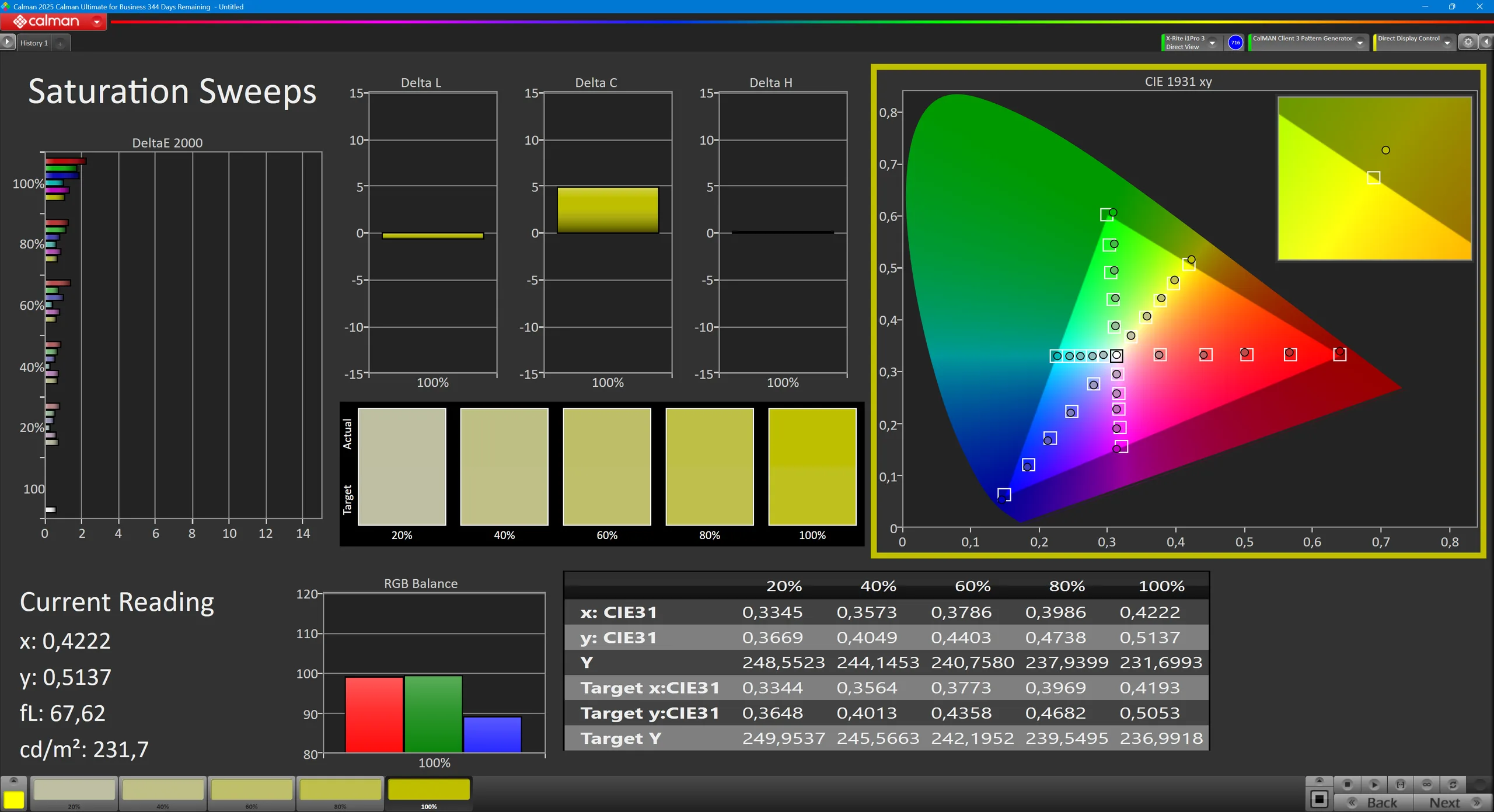 | Greyscale dE 2000 * | 5.7 | 3.6 37% | 0.8 86% | 2 65% | 1.4 75% | 1.4 75% |