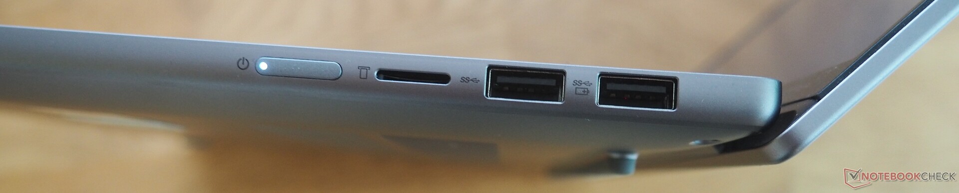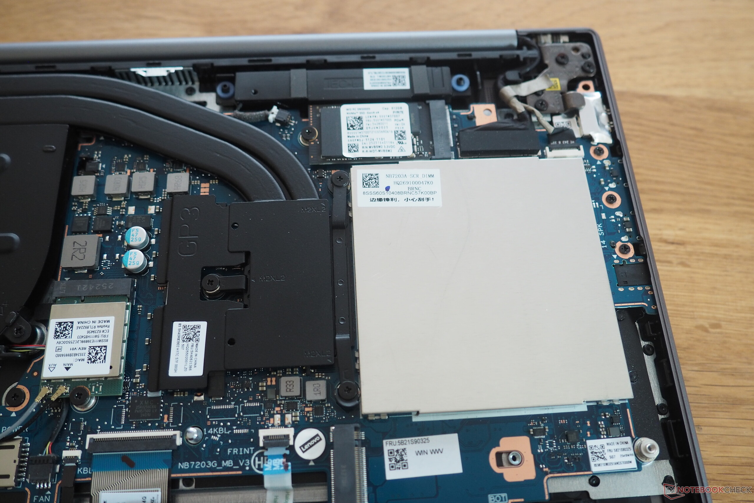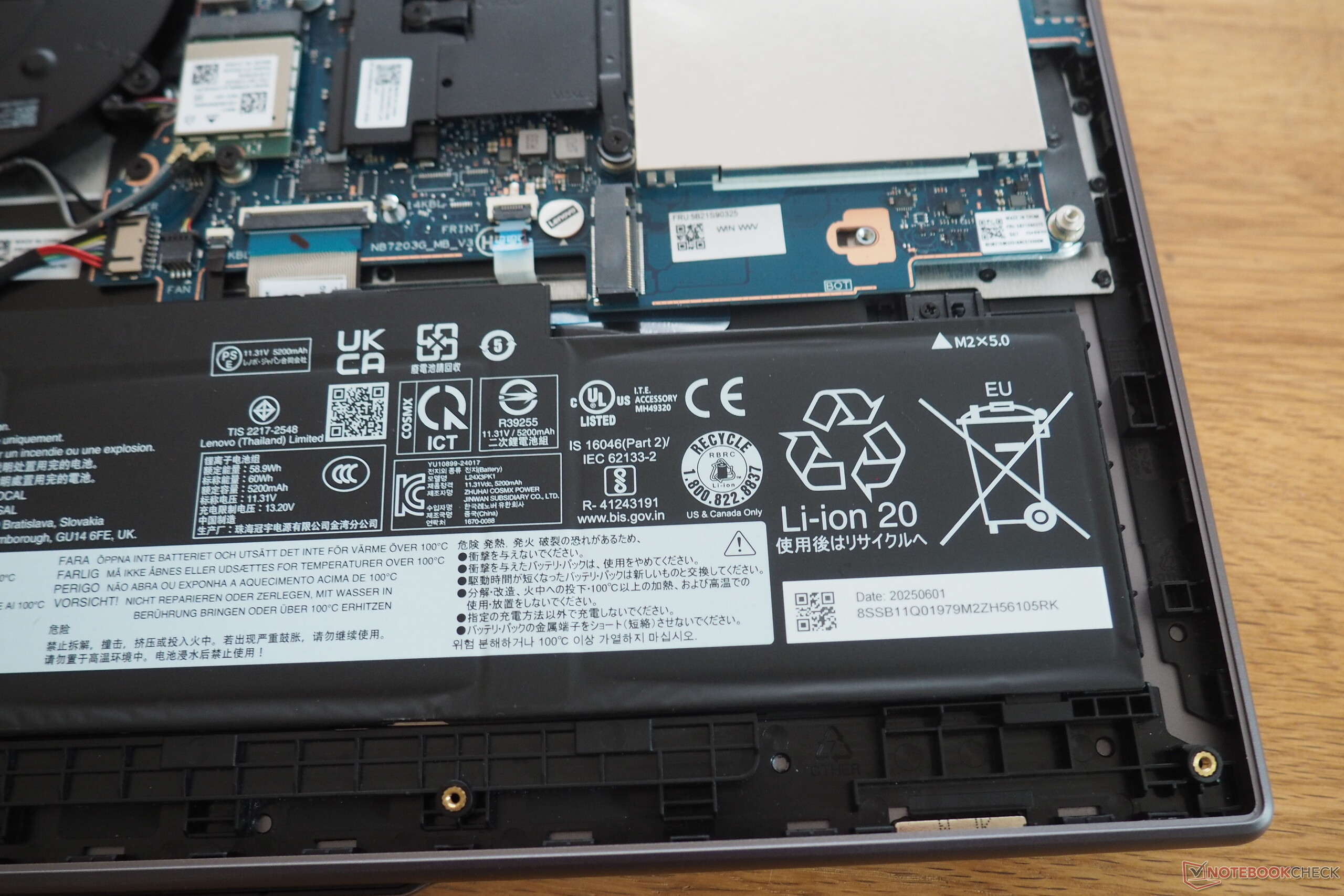 No lado esquerdo, o senhor encontrará duas portas USB-C 3.1 Gen 2 com suporte a DisplayPort 1.4 e PowerDelivery, além de uma saída HDMI e um conector de áudio combinado. O lado direito abriga um leitor de cartão microSD razoavelmente rápido e duas portas USB-A 3.0 convencionais. Não há uma porta Ethernet incluída, mas o laptop possui um módulo Wi-Fi 7 muito rápido. A webcam, que inclui um obturador de privacidade, oferece uma resolução de apenas 0,9 MP, mas ainda assim produz uma imagem mais nítida do que muitos modelos concorrentes. A tampa inferior é fácil de remover depois de soltar seis parafusos Torx. Na parte interna, o senhor encontrará dois slots SO-DIMM ocupados, bem como dois slots M.2. O slot 2280 está livre, enquanto o SSD instalado fica no slot menor 2242.