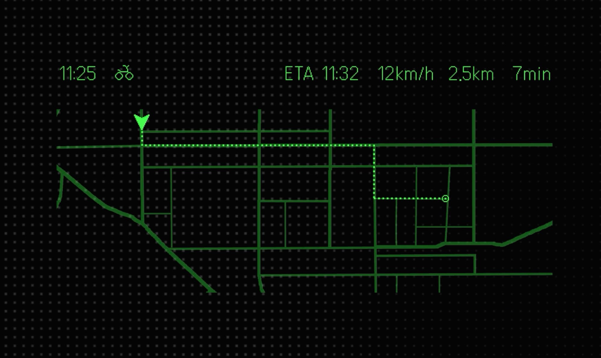 As respostas não são comunicadas acusticamente, mas são mostradas diretamente no campo de visão do usuário por meio de um visor. Por exemplo, a navegação, uma notificação recebida ou dados em tempo real sobre o exercício atual podem ser exibidos sem que essas informações fiquem visíveis para as pessoas que estiverem por perto. A tela de micro LED integrada atinge uma resolução de 640 x 350 pixels e uma taxa de quadros de 60 Hz, com o brilho ajustado automaticamente ao ambiente por um sensor