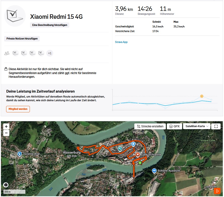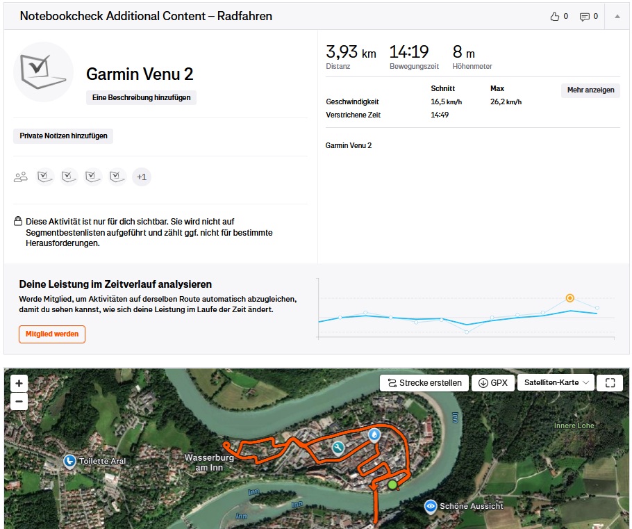 Seja em ruas estreitas de cidades antigas ou em áreas menos densamente construídas, o dispositivo mantém a linha ideal de forma quase consistente e, no geral, é quase tão preciso quanto o dispositivo de comparação, o Garmin Venu 2.