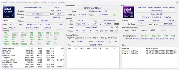 Os limites de potência são idênticos aos do Yoga Pro testado anteriormente e, em geral, o Core Ultra 9 285H tem apenas uma pequena vantagem nos testes de núcleo único em relação ao Core Ultra 7 255H. Portanto, a atualização da CPU não vale realmente a pena. Os dois chips M4 no MacBook Pro 16 oferecem um desempenho significativamente maior da CPU, tanto em testes de núcleo único quanto de vários núcleos.