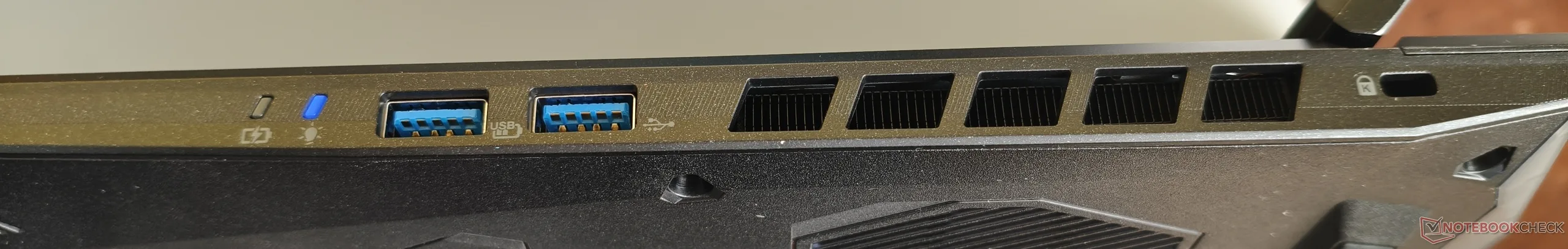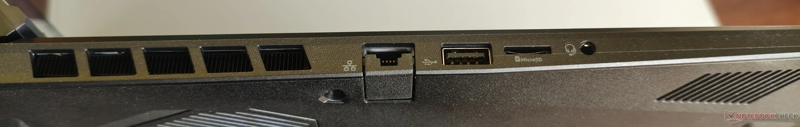 Embora os compradores tenham que passar sem o Thunderbolt, há pelo menos uma porta USB 4 a bordo. Em geral, o laptop de 18 polegadas oferece duas portas Tipo C e três Tipo A, o que é suficiente. Há também um soquete de áudio, uma saída HDMI, um leitor microSD, uma porta LAN RJ45 e uma abertura para travas Kensington.