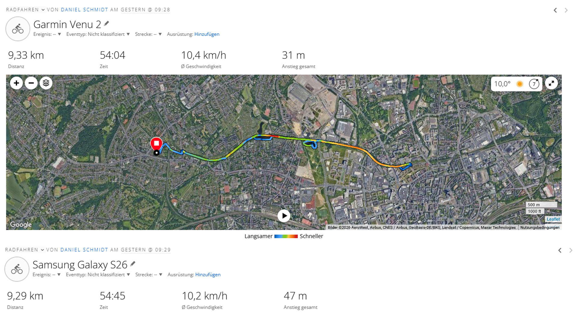 Durante um passeio de bicicleta, comparamos o smartphone da Samsung com o Garmin Venu 2, e ele provou ser igualmente preciso como o Modelo Ultra. Embora tenha sido um pouco menos preciso do que o smartwatch no lago, o S26 demonstrou melhores características de recepção entre prédios.