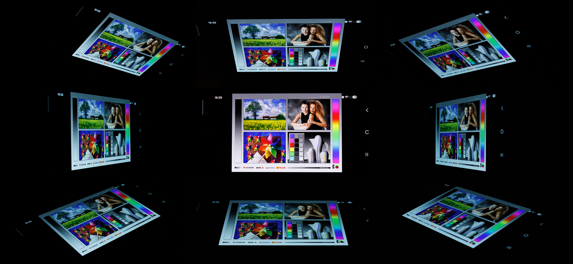 Escolha uma cena e navegue pela primeira imagem. Um clique muda a posição nas telas sensíveis ao toque. Um clique na imagem ampliada abre o original em uma nova janela. A primeira imagem mostra a fotografia em escala do dispositivo de teste.