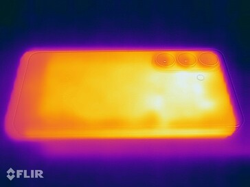 Quando em marcha lenta, as temperaturas da superfície do Samsung Galaxy S26 são perfeitamente seguras. Entretanto, sob carga contínua (algo que simulamos ao executar o benchmark Burnout), essas temperaturas aumentaram significativamente, às vezes ultrapassando 45°C. Embora isso seja quente, não é motivo de preocupação.
