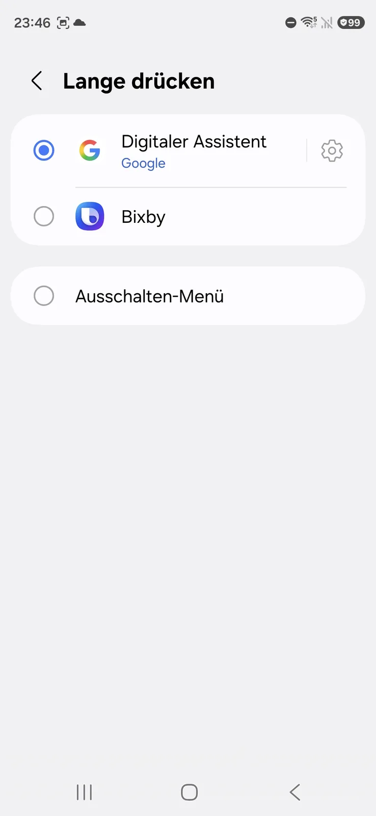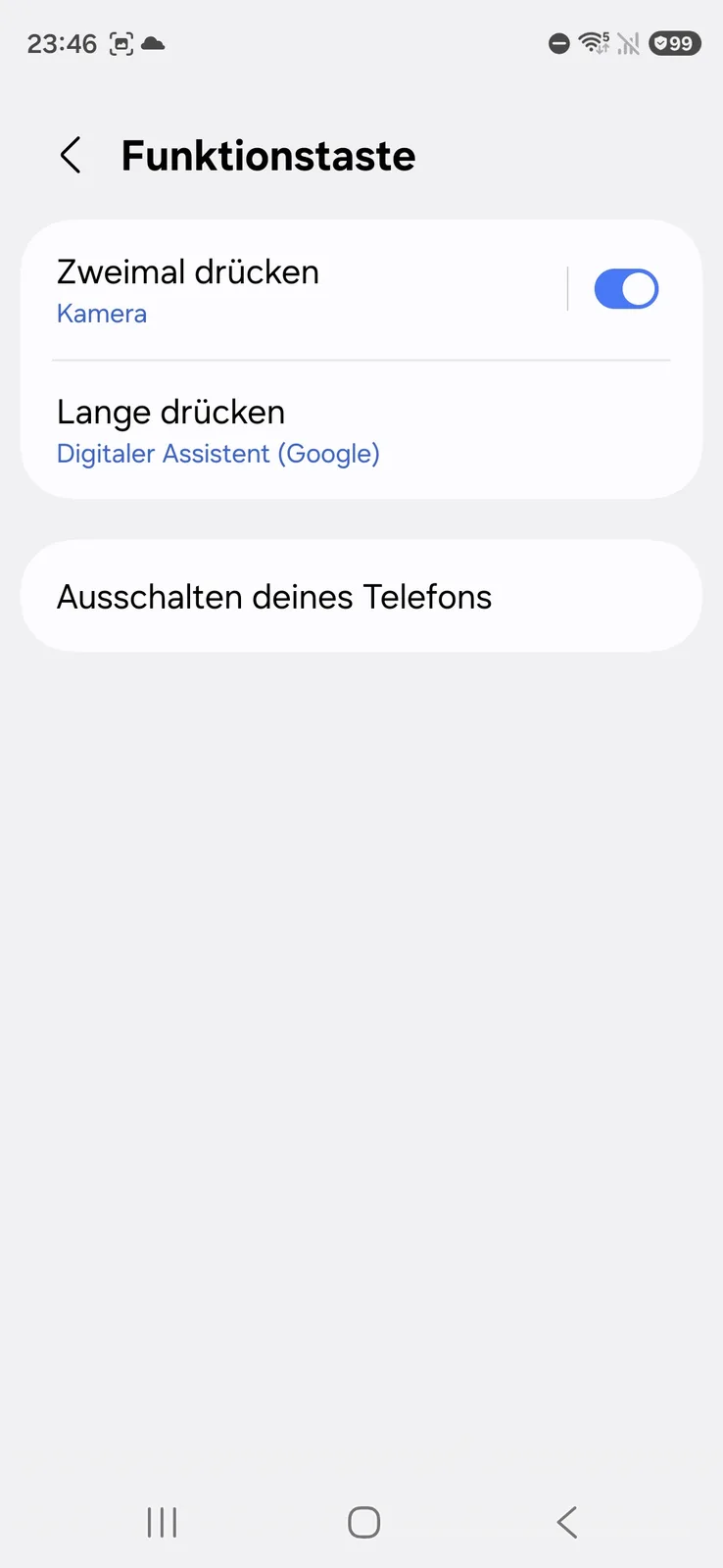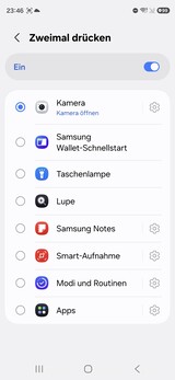 O botão liga/desliga é, na verdade, mais um botão de função que não apenas desliga e liga o smartphone, mas também pode iniciar diretamente o assistente configurado ou um aplicativo específico. Um modo de uso com uma mão também está incluído.