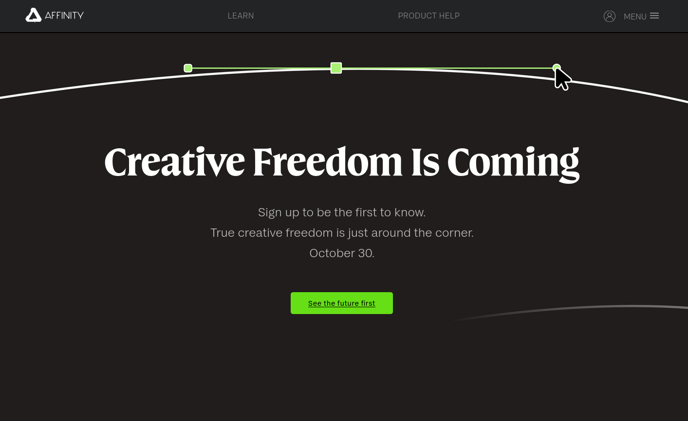 O Affinity Photo e o Designer da Serif têm sido ótimas alternativas a produtos como o Photoshop e o Illustrator para aqueles que preferem pagar por uma licença perpétua única em vez de uma assinatura contínua. Recentemente, no entanto, a Serif retirou a loja do software Affinity do ar e o site substituiu a página de destino com uma mensagem que diz"A verdadeira liberdade criativa está chegando", juntamente com uma data de lançamento em 30 de outubro e um link para um boletim informativo de anúncio.