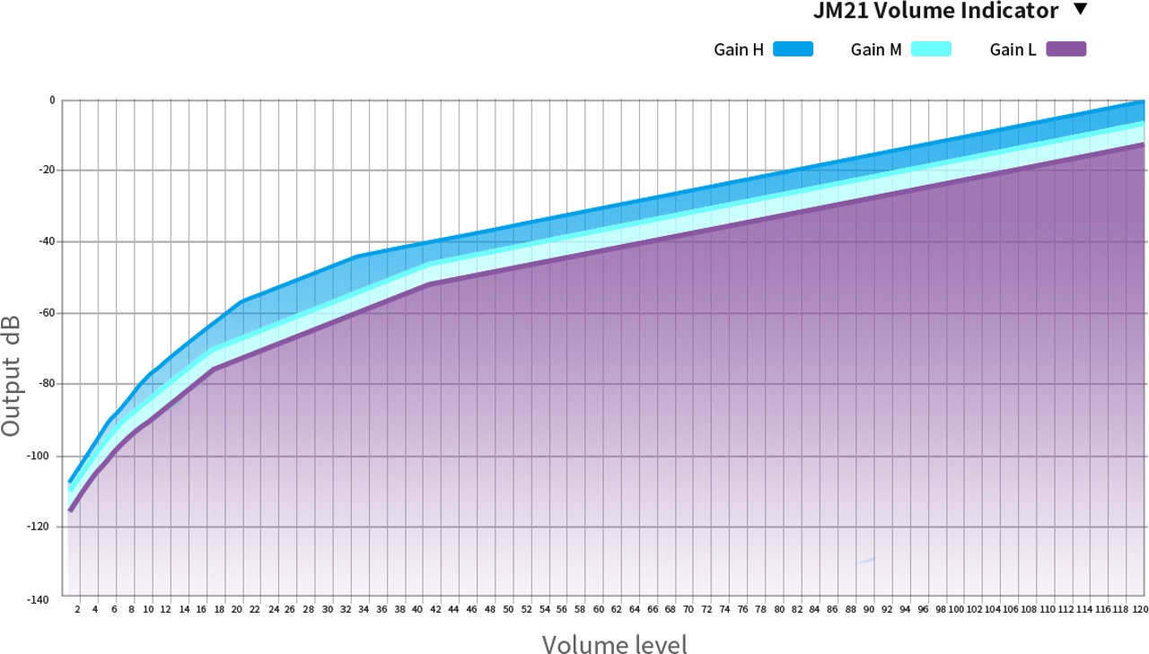 Uma bateria de 3.100 mAh fornece até 700 mW de potência de saída para acionar fones de ouvido de alta qualidade. Uma configuração de ganho de três vias e uma curva de volume ajustável permitem que os usuários ajustem o JM21 2026 para melhor corresponder às impedâncias e aos requisitos de potência de vários fones de ouvido.
