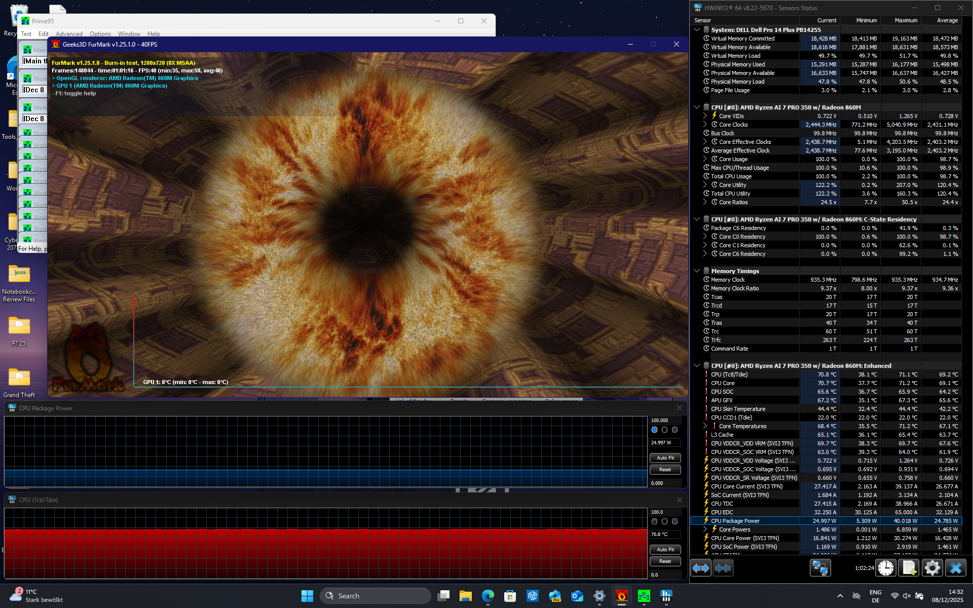 Mesmo depois de uma hora, o laptop Dell Pro consegue manter o consumo de energia da CPU em 25 W, portanto, não há absolutamente nenhum estrangulamento.