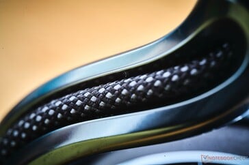 O ajuste de tamanho permanece contínuo, mas a B&W aumentou a resistência para evitar mudanças acidentais. Uma seção curta do cabo que conecta os dois fones de ouvido agora é exibida de forma atraente em um trilho de metal. Como antes, a estrutura é feita inteiramente de alumínio e couro genuíno, e a qualidade de construção é quase perfeita.