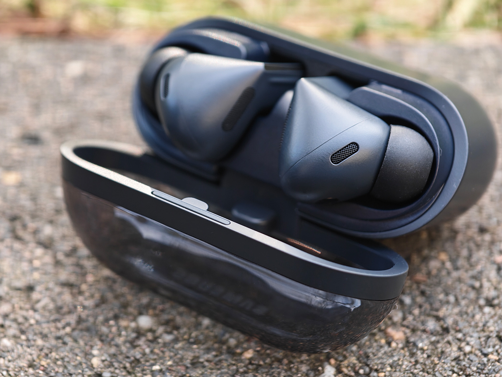 Ergonomicamente otimizados, os Buds3 FE oferecem um ajuste personalizado graças aos três tamanhos de pontas de ouvido de silicone e isolam passivamente o ruído melhor do que os fones de ouvido intra-auriculares abertos. Em testes práticos, eles permaneceram firmes no lugar ao caminhar ou andar de bicicleta. Para fones de ouvido intra-auriculares, a pressão é controlável, o que torna as sessões mais longas bastante confortáveis. Os controles de toque na haste são precisos, embora seja necessário algum tempo para se acostumar a acionar inicialmente toques duplos e triplos de forma confiável.