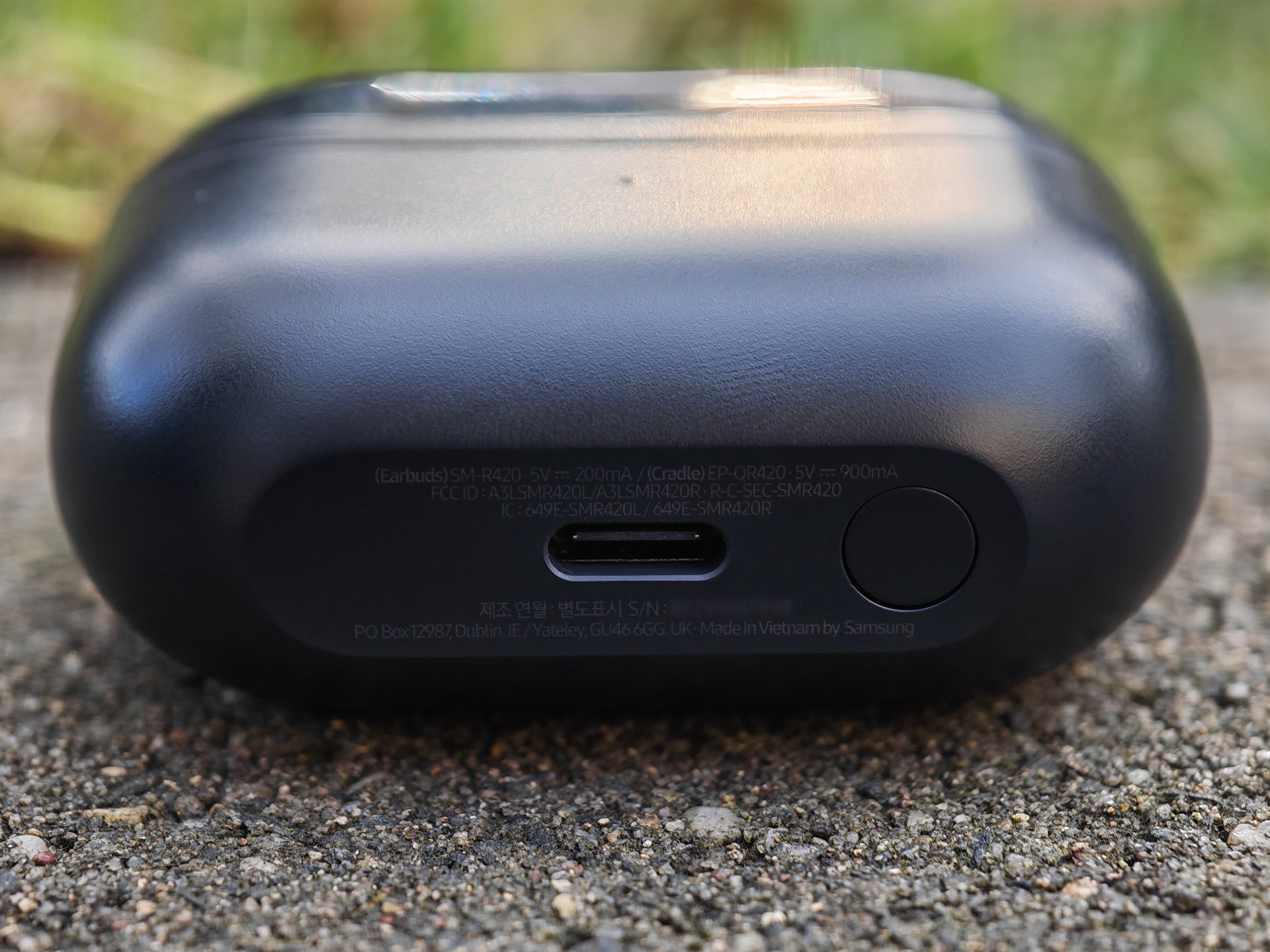 Uma carga de 10 minutos pela porta USB-C do estojo proporciona cerca de 60 minutos de reprodução, enquanto uma carga completa leva pouco mais de uma hora e meia. Não há suporte para carregamento sem fio.