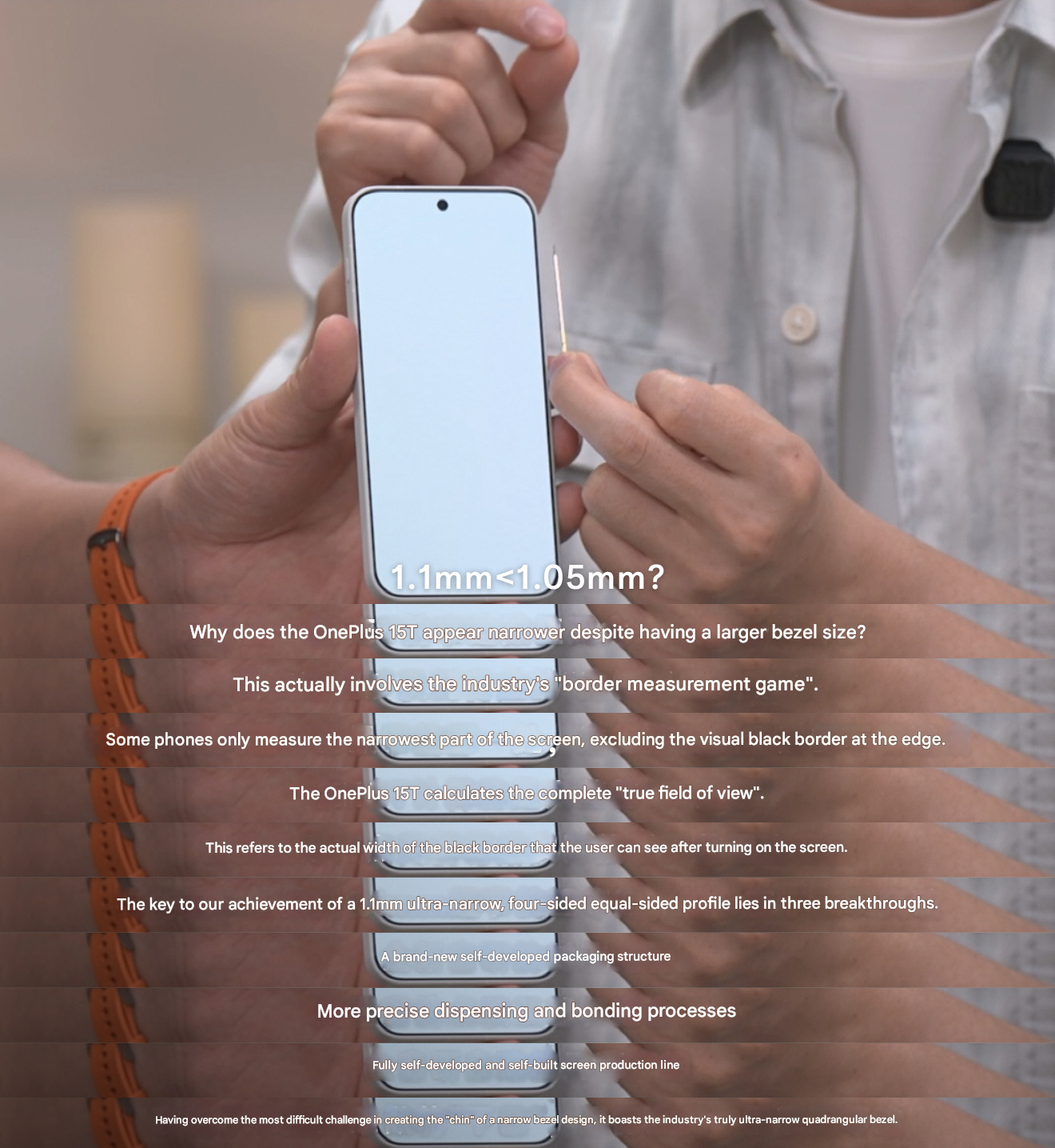 Outro aspecto notável da sessão ao vivo é a proporção de peso de 50:50 do OnePlus 15T. Conforme apresentado, ele pode ser facilmente equilibrado na ponta de uma caneta, e a marca afirma que esse aspecto do design deve fazer com que o telefone ofereça uma sensação equilibrada e confortável na mão.