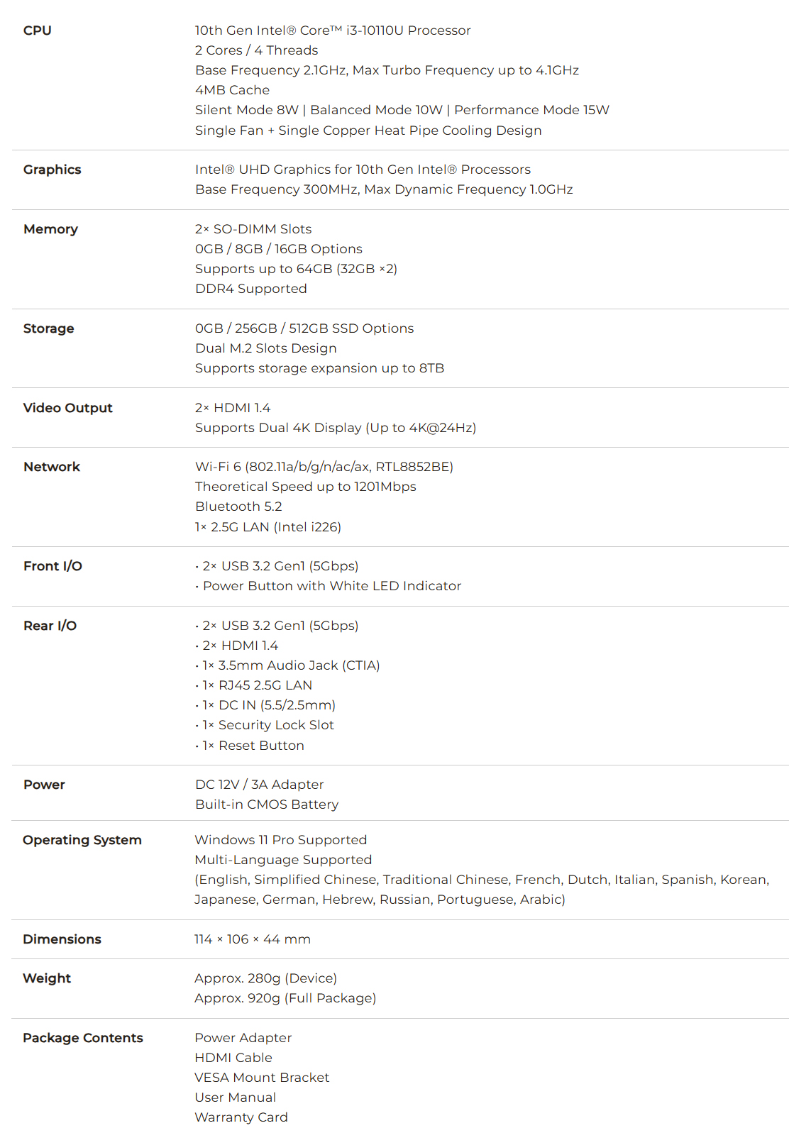 Além disso, há Bluetooth 5.2 e WiFi 6 de banda dupla para conectividade sem fio. O NucBox G3 Pro também tem um formato relativamente compacto e suporte para montagem VESA. Confira a folha de especificações anexada abaixo para saber mais sobre o mini PC.
