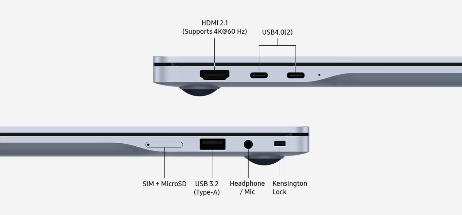 Por outro lado, as portas HDMI 2.1, USB4 e USB 3.2 Tipo A do Galaxy Book4 Edge assim como um slot de trava Kensington e um conector de 3,5 mm no lado direito do laptop. O mesmo acontece com a tela IPS de 15,6 polegadas, que produz 1080p em uma proporção de 16:9 com um revestimento antirreflexo. Da mesma forma, o mais novo laptop da Samsung mantém inalterada a capacidade da bateria de 61,2 Wh com suporte para carregamento de 65 W dentro das mesmas dimensões de 356,6 x 229,8 x 15,5 mm do seu antecessor.