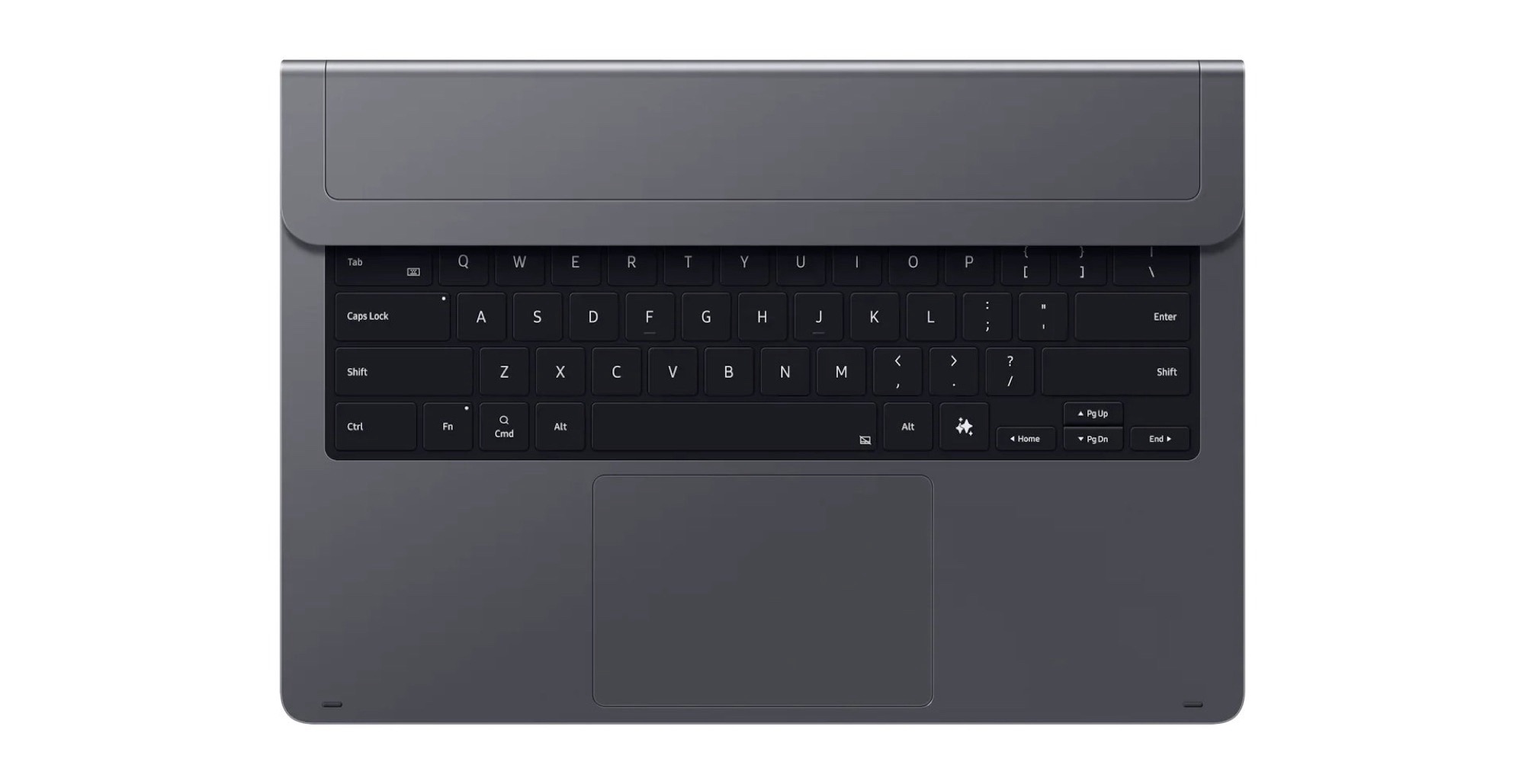 Com o teclado acoplado, o tablet pode até mesmo ser dobrado e transportado como um laptop, enquanto a dobradiça permite que a tela seja posicionada em um ângulo confortável. Os dados e a energia são fornecidos por meio de pinos de metal na parte traseira do tablet, de modo que o teclado não precisa ser carregado separadamente. O Pro Keyboard apresenta um trackpad multitoque que é 14,6% maior do que o existente na Keyboard Book Cover do Galaxy Tab S10 Ultra.