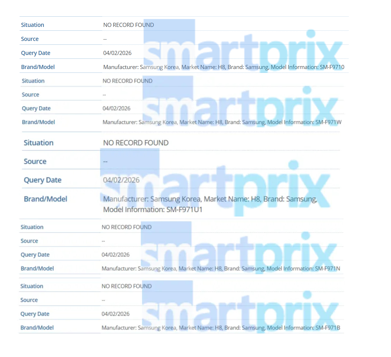 Agora, diversas variantes regionais do chamado Galaxy Z Wide Fold apareceram em novos resultados do banco de dados IMEI. Especificamente, a Samsung parece estar testando o SM-F9710, o SM-F971N, o SM-F971U, o SM-F971U1 e o SM-F971W. Com base nos números de modelo atuais da Samsung, essas novas versões correspondem a variantes chinesas, sul-coreanas, americanas, canadenses e do resto do mundo, respectivamente.