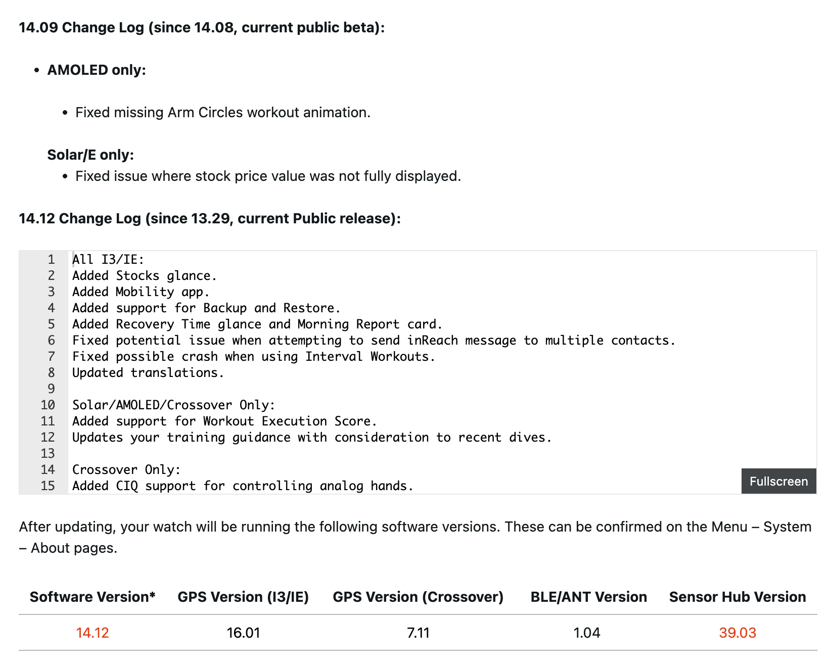 Na época, a Garmin alegou ter resolvido apenas dois bugs pendentes. Atualmente, parece que o desenvolvimento da versão beta v14.xx está em andamento, com a Garmin mantendo o Instinct E, Instinct 3, Instinct Crossover AMOLED (atualmente US$ 649 na Amazon) no System Software 13.29 por enquanto. No entanto, sua mais recente atualização Beta Versão 14.12 parece não trazer nada de novo para a mesa.