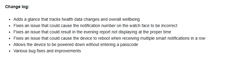 As versões beta 15.08 e 15.10 também adicionam a capacidade de os usuários desligarem o smartwatch vivoactive 6 sem digitar a senha do dispositivo. Há correções de bugs para problemas com o número de notificação incorreto exibido no mostrador do relógio e a hora errada exibida no Relatório Noturno. Além disso, a Garmin resolveu um problema que fazia com que o wearable reiniciasse após receber uma série de notificações inteligentes. Além disso, foi dito que a versão beta 15.08 traz a versão 3.00 do GCM Translations para os usuários.