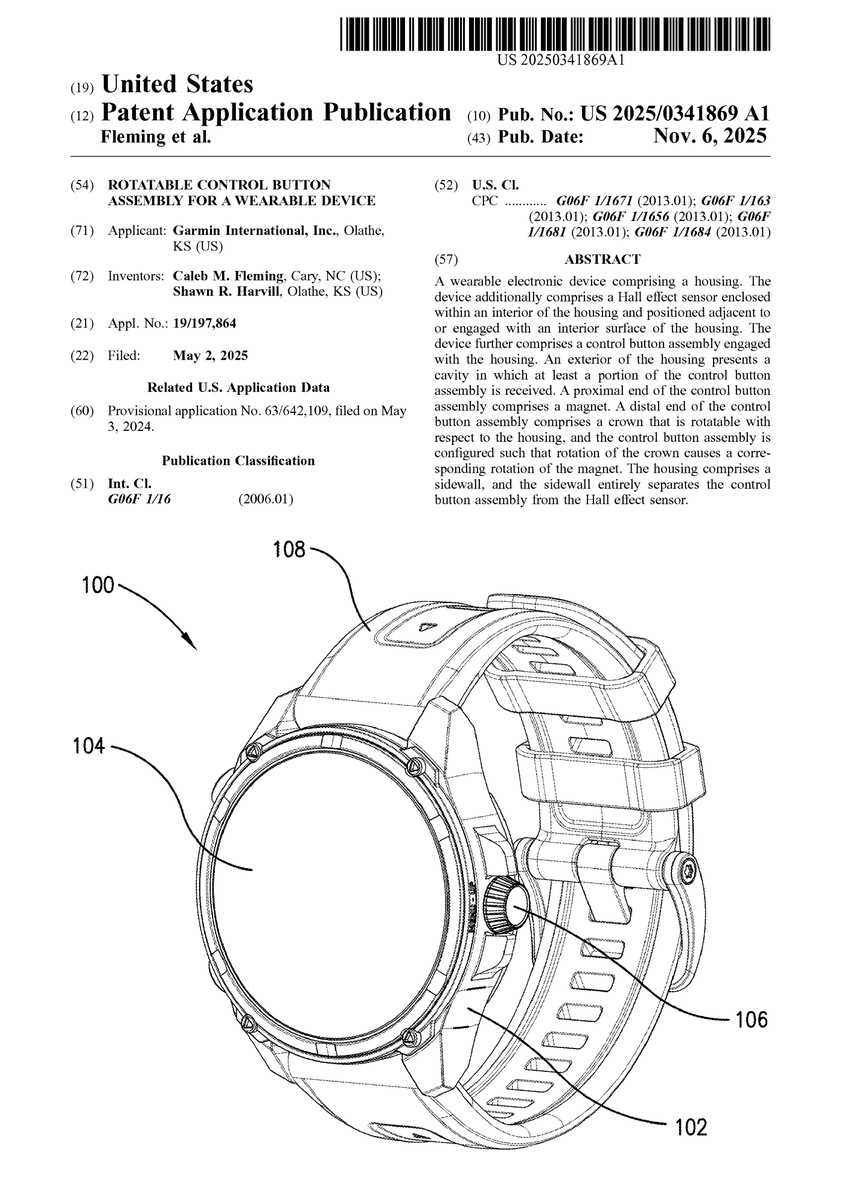 Inicialmente, suspeitamos que uma patente recente fosse a fonte das descobertas da Gadgets & Wearables. Infelizmente, o Justia e outros sites comparáveis não apresentaram resultados relevantes. No entanto, a Wearable descobriu agora a patente que parece ressaltar grande parte das alegações anteriores da Gadgets & Wearables. Registrada como "conjunto de botão de controle giratório para um dispositivo vestível" sob o número de patente 20250341869a Garmin descreve o botão de controle da seguinte forma: