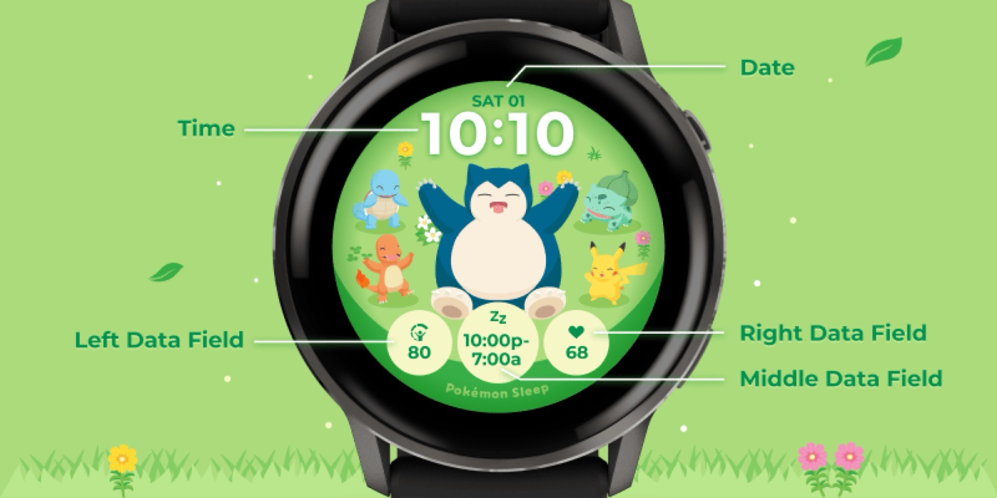 Os dois mostradores de relógio Pokémon Sleep: Snorlax & Friends e Pokémon Sleep: I Choose You estão agora disponíveis gratuitamente no Garmin Connect. Snorlax & Friends mostra Snorlax e o Pokémon inicial da primeira geração Pokémon. Durante o dia, a pose de Snorlax indica a bateria do corpo, ou seja, a forma física do usuário de acordo com os dados coletados pelo smartwatch; à noite, a pose é escolhida aleatoriamente