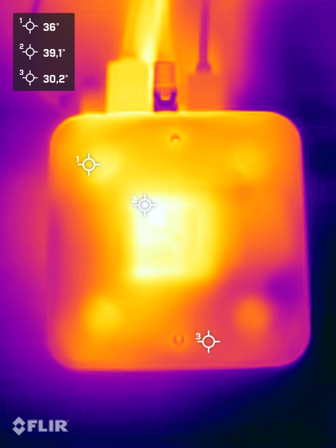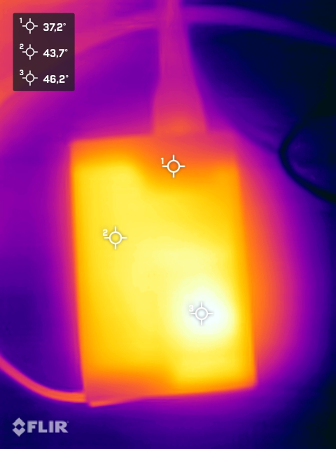 (±) A parte inferior aquece até um máximo de 41.9 °C / 107 F, em comparação com a média de 36.6 °C / 98 F