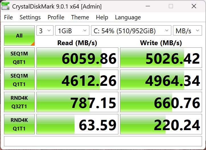 | Connectivity - USB 3.x / USB4 / TB - AS SSD Seq Read Test (1GB) | |