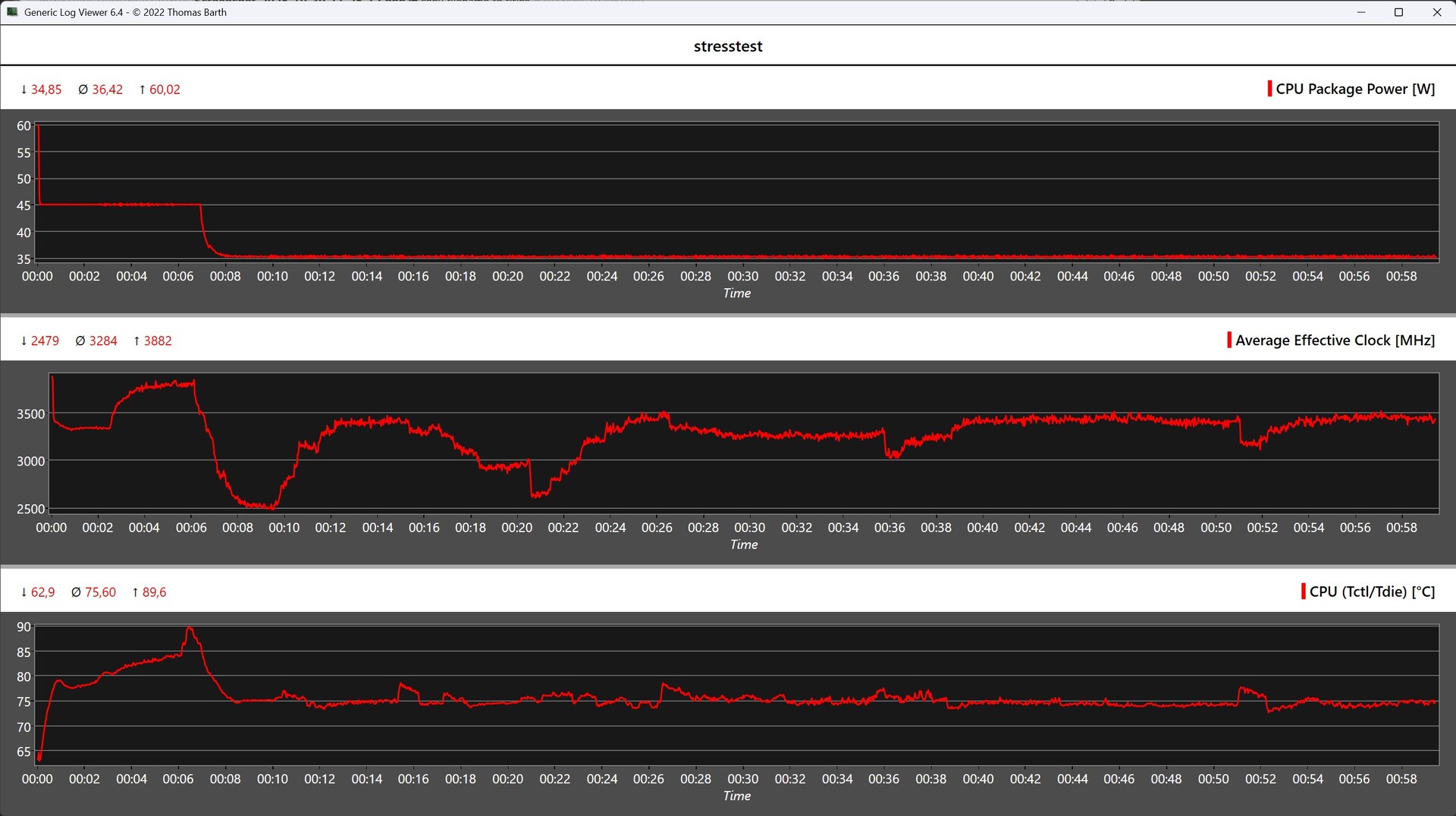 A carcaça do Geekom A8 permanece agradavelmente fria tanto no modo inativo quanto sob carga, sem nenhum ponto de calor problemático. No teste de estresse, a temperatura do Ryzen 7 8745HS sobe brevemente para cerca de 90 °C, mas isso é inofensivo. O sistema de resfriamento dissipa de forma confiável o TDP de 35 watts permanentemente presente.