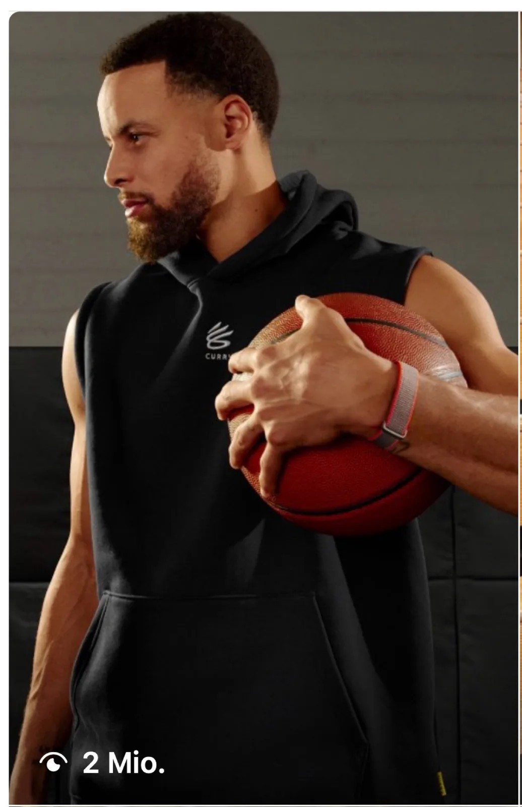 A pulseira cinza-clara com detalhes em laranja é claramente diferente do rastreador de fitness preto simples que Stephen Curry usava antes. O fato de a pulseira já ter sido usada em público por várias semanas indica que o hardware está quase finalizado e o lançamento é iminente