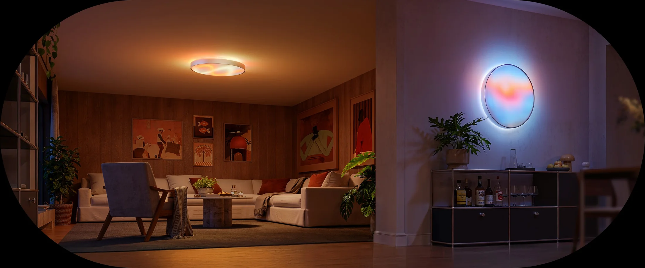 A nova Ceiling Light Ultra é essencialmente uma evolução do conhecido modelo do fabricante. Ele apresenta uma matriz de pixels composta por 616 LEDs individuais, que podem projetar efeitos de iluminação personalizados no teto ou na parede. Cada pixel individual pode ser controlado separadamente para exibir pixel art e uma ampla variedade de motivos, por exemplo, com suporte do AI Lighting Bot 2.0 para conteúdo personalizado com base em texto e outras entradas. Cerca de 100 cenas predefinidas e modos de música também estão disponíveis.
