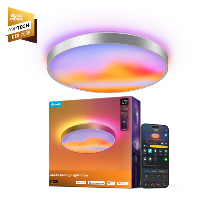 Como alternativa, a Govee 21-inch Smart Ceiling Light Ultra também pode ser usada como uma luz ambiente convencional e, segundo o fabricante, proporciona uma iluminação particularmente natural, incluindo ajustes com base na hora do dia. O brilho atinge até 5.000 lúmens. A nova luminária de teto inteligente de 21 polegadas Ultra da Govee também oferece a conectividade familiar de casa inteligente do fabricante, incluindo Matter, bem como controle de voz via Amazon Alexa e Google Home.