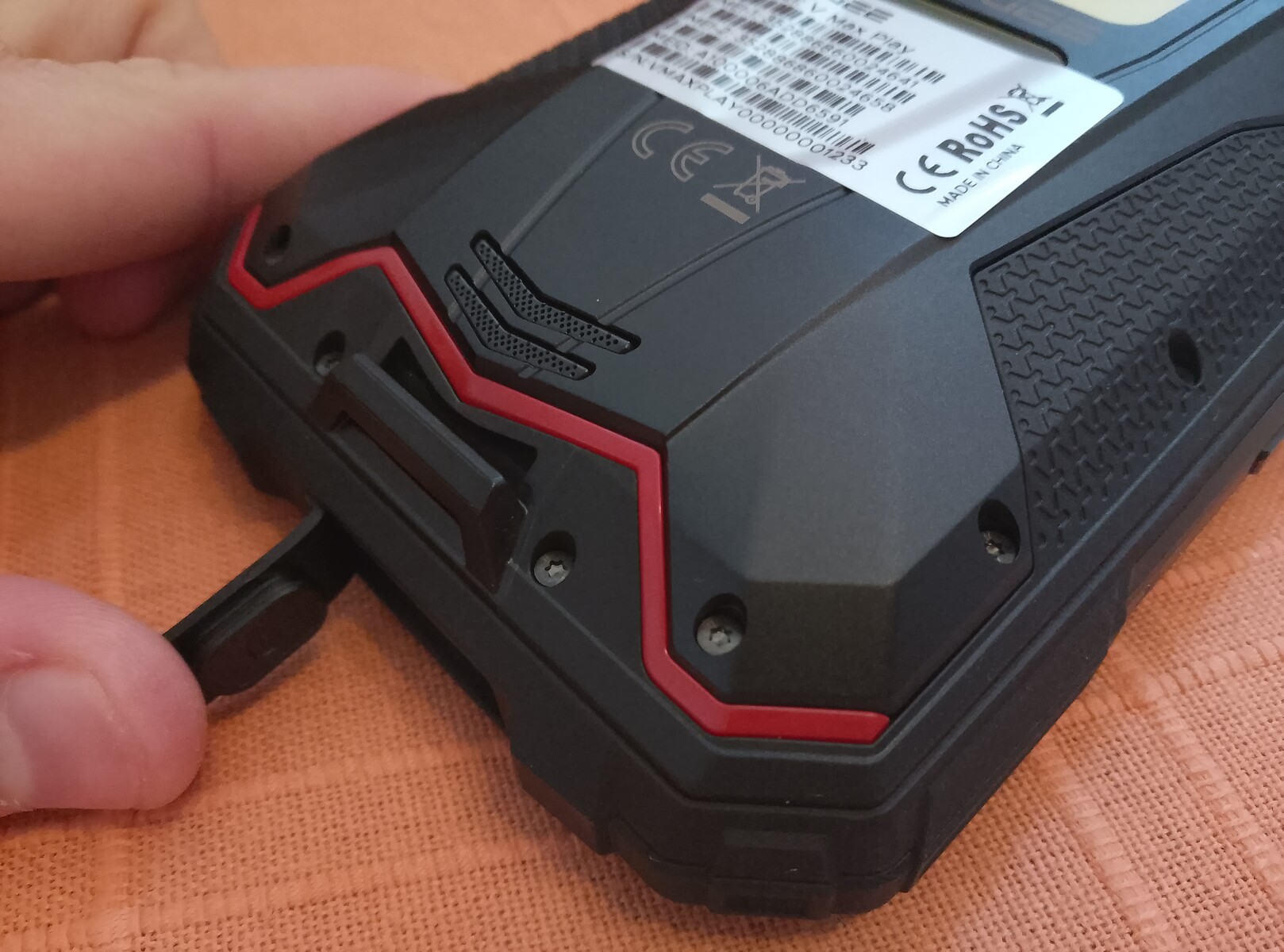 A bandeja do cartão SIM à esquerda tem entalhes para dois cartões nano-SIM e um cartão micro-SD e é fácil de remover e recolocar. O V Max Play tem 5 botões no total; esses botões são, sem nenhuma ordem específica, os botões de aumentar e diminuir o volume, energia, projetor e uma tecla de ação personalizada.