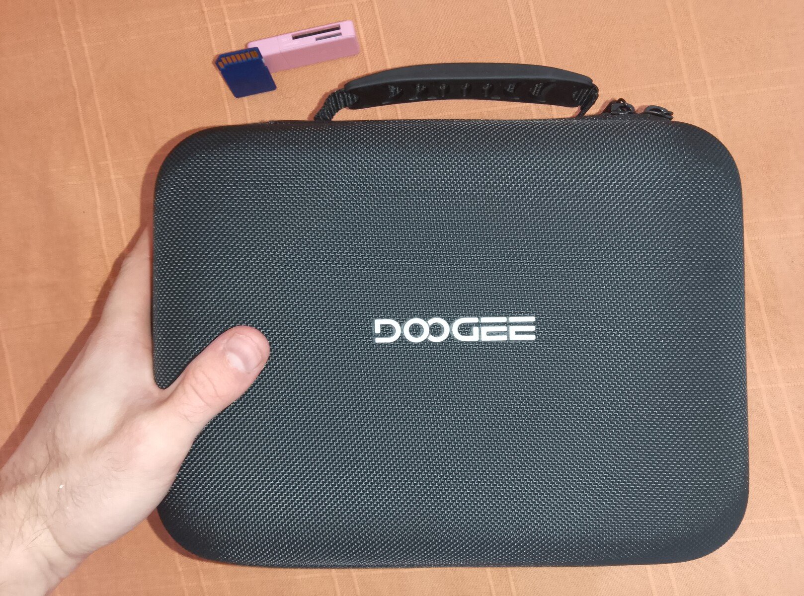 Além de uma caixa de papelão comum, um estojo de viagem de plástico preto garante a segurança do telefone no caminho até o usuário. Além de um V Max Play, o estojo abriga um pequeno carregador de 45 W, um cabo USB-C para USB-C, um protetor de tela rígido, vários folhetos de informações e garantia e um suporte de telefone com capa protetora rígida - um grande pedaço de plástico que protege a parte traseira, inferior, esquerda e direita do telefone Doogee, com uma alça em um dos lados. Esse é o conjunto básico de brindes; aqueles que estiverem dispostos a pagar um pouco mais também receberão um pequeno alto-falante Bluetooth da marca Doogee e um suporte para facilitar o uso do V Max Play como projetor.