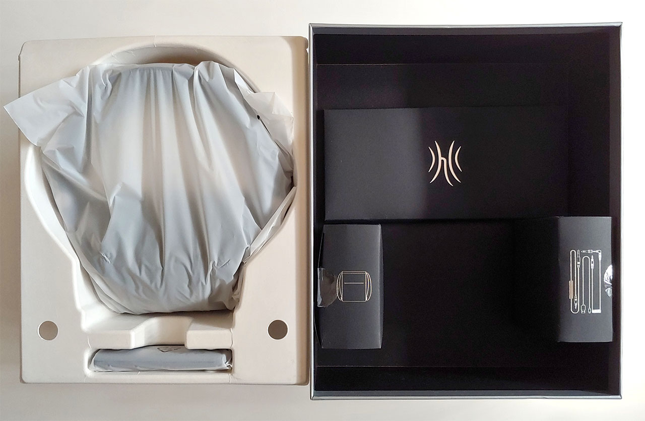 Os fones de ouvido são fornecidos com uma bolsa, cabo de carregamento, dois cabos de áudio e manuais.