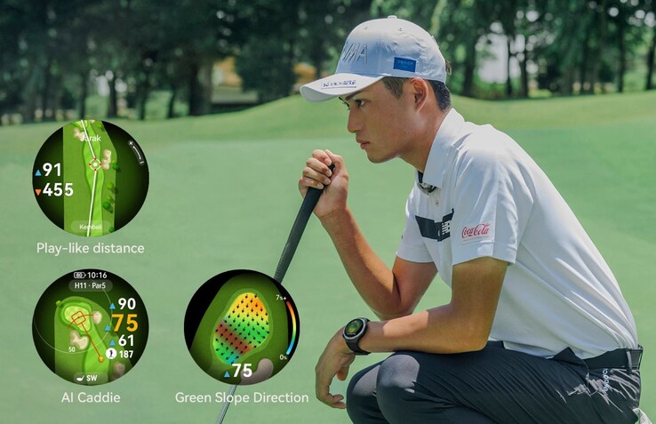 A pulseira esportiva preta é detalhada com o logotipo da Honma e uma fivela dourada. Além disso, o smartwatch vem com um mostrador de relógio exclusivo da Honma. Como antes, a tela é protegida por vidro de safira. Em termos de software, o Huawei Watch GT 6 Pro foi aprimorado principalmente com novos recursos de golfe destinados a ajudar a determinar o ângulo de lançamento ideal e a distância até o buraco, enquanto o chamado "AI Caddie" destina-se a fornecer dicas profissionais.
