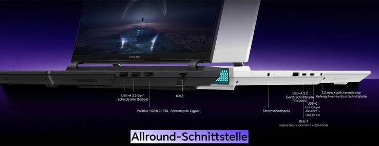 O objetivo é soprar o ar quente para fora do gabinete com mais eficiência. De acordo com o site Honor, o notebook pode dissipar até 12,5% mais calor graças a essas ventoinhas. Com um consumo de energia limitado a 170 watts, o Honor Win H9 também deve ser extremamente silencioso - o site Honor anuncia que o ruído da ventoinha é de 38 dB, mas não especifica a distância a partir da qual esse valor foi medido. Se o sistema de resfriamento for totalmente utilizado, o notebook poderá suportar até 270 watts de potência