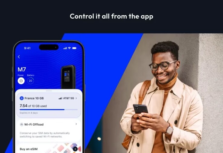 De acordo com a Netgear, o Nighthawk 5G M7 suporta redes 5G em mais de 140 países e pode ser usado com um nano SIM ou eSIM. O aplicativo para smartphone que o acompanha está disponível para Apple iPhone e Android telefones e apresenta um mercado eSIM que visa facilitar a escolha do plano certo para uma próxima viagem. O aplicativo também mostra os dados restantes e o nível da bateria do hotspot 5G móvel.