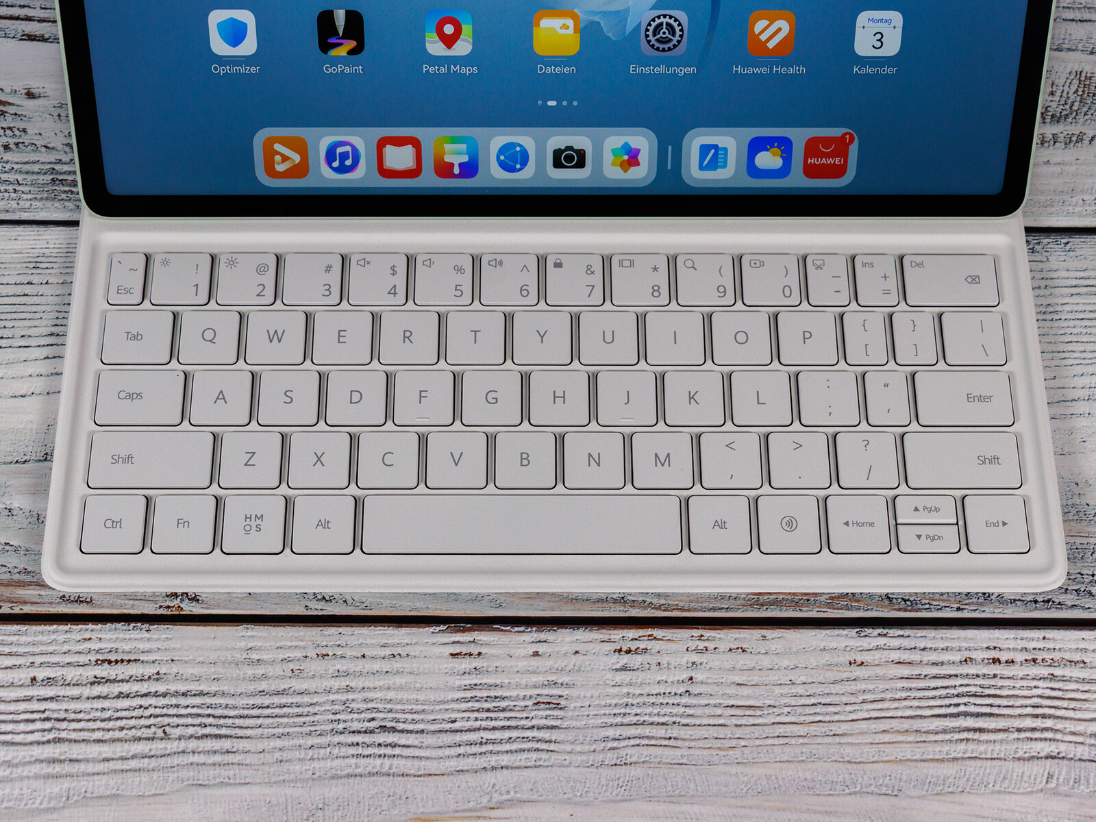A nova Huawei M-Pencil Pro é recomendada como caneta de entrada. Graças à sua tecnologia sem fio NearLink integrada, ela tem baixa latência e pode distinguir entre mais de 10.000 níveis de pressão. Ela também suporta feedback tátil, diferentes pontas de caneta e um botão iluminado no lado oposto da ponta. Com três pontas diferentes, ela está perfeitamente preparada para todos os cenários e provou ser uma caneta stylus de primeira classe em nosso teste, sendo que nem mesmo o Apple Pencil ou a Samsung S Pen conseguiram igualar sua sensação de escrita.