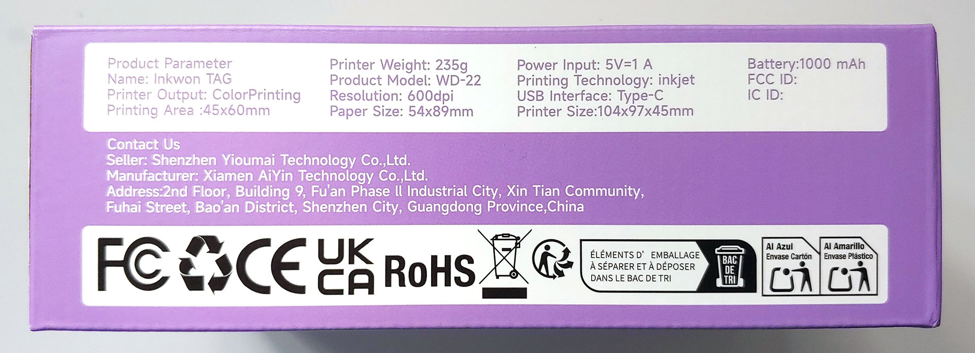 A Inkwon Tag está disponível em um Pacote Básico, que inclui a impressora, um cartucho de tinta e três tipos de papel; o Pacote Mega duplica o papel e acrescenta uma camiseta, uma sacola e um porta-retratos. O preço sugerido é de US$ 299 e US$ 349, respectivamente, e o preço no Kickstarter Super Early Bird é de US$ 169 e US$ 199.