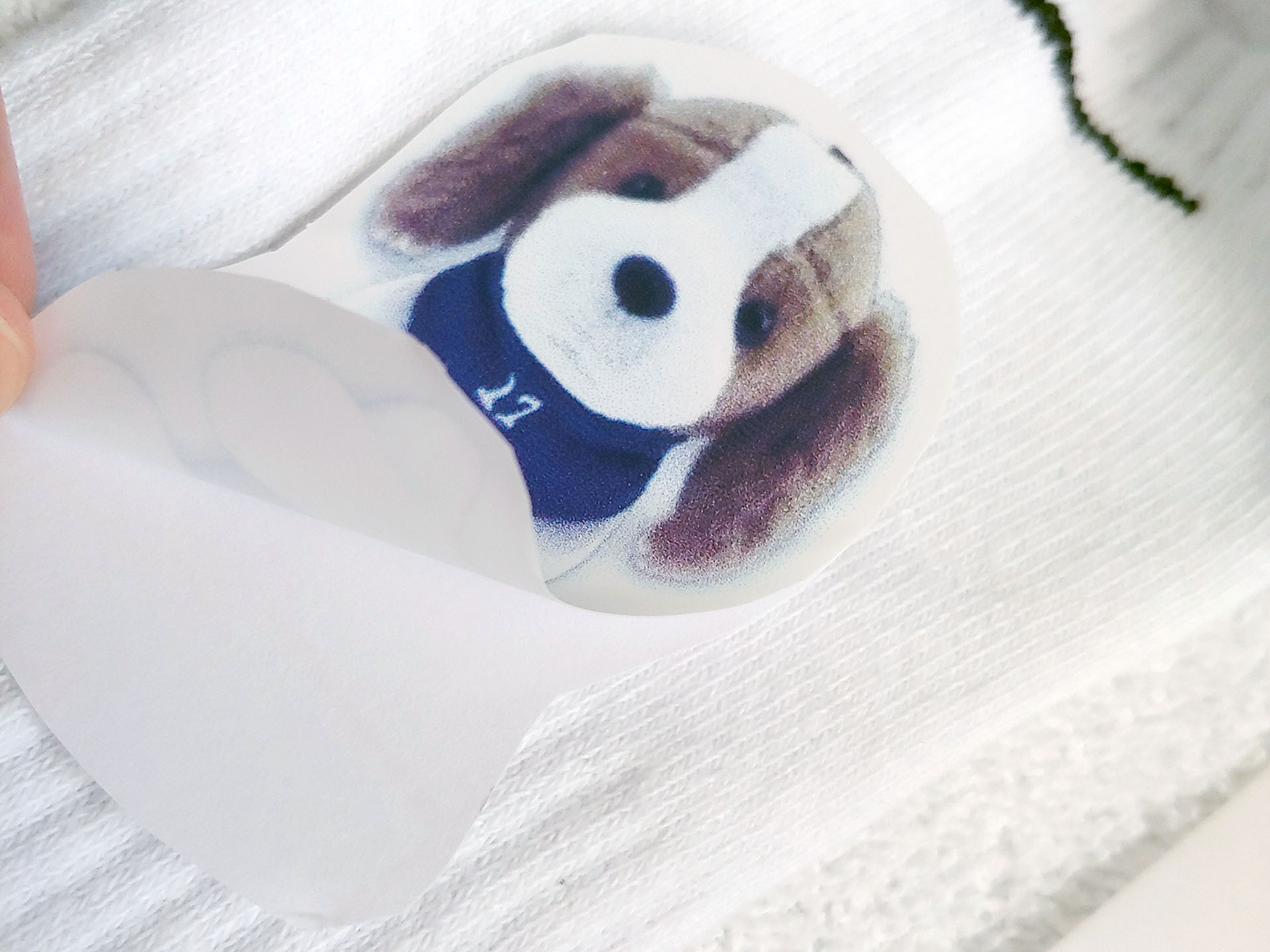 O papel para passar a ferro é simples de usar: descasque, coloque e passe o ferro com a folha protetora por algumas dezenas de segundos para fundi-lo ao tecido. As transferências têm aparência profissional com um fundo branco e funcionam bem para logotipos, etiquetas e decorações. Assim como outros materiais para passar a ferro, o estiramento excessivo e a lavagem na máquina podem fazer com que a imagem rache.